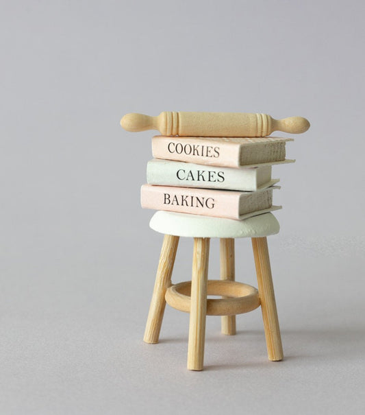 Dollhouse Miniature Cook Book Set and Rolling Pin