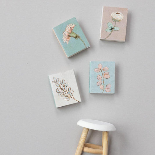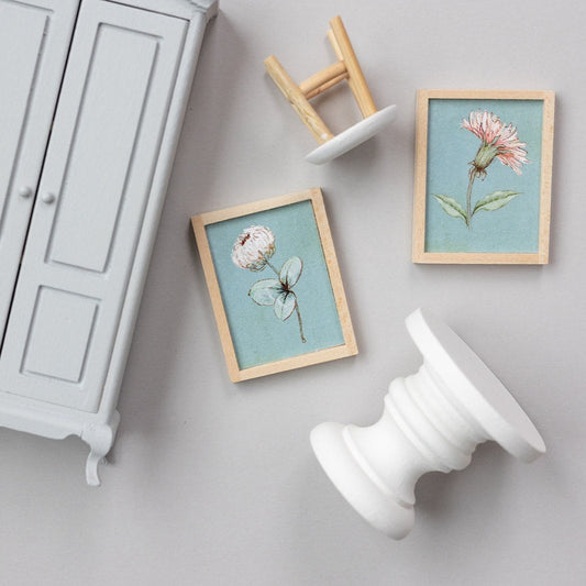 Miniature Dollhouse Art, Set of Two Vintage Inspired Floral Illustrations